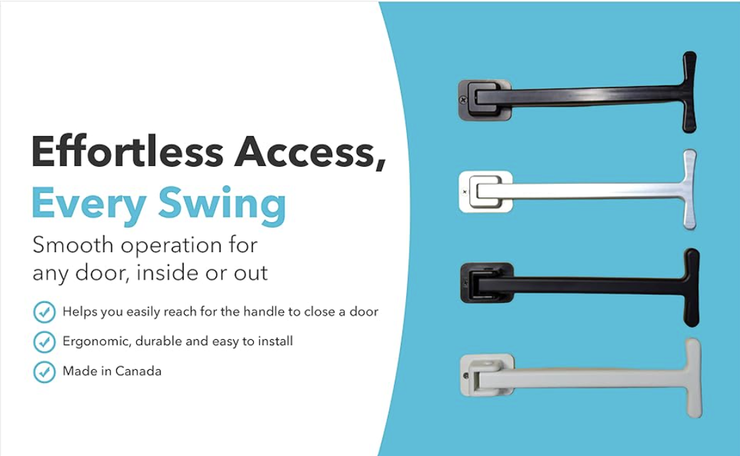 Ever struggled to close a door when your hands were full, you had to reach awkwardly, or there was a tricky step or ramp in the way? The T-Pull is a thoughtfully engineered solution designed to give you the reach and leverage you need to close doors from any position. With T-Pull, even heavy doors require only a gentle pull, making what once felt impossible, effortless.Trusted and sold worldwide, T-Pull is used everywhere from homes and offices to hospitals, long-term care, and senior residences. Say goodbye to stretching, straining, or tricky maneuvers, just grab the T-shaped handle and pull. It’s that easy. The T-Pull Door Closer is here to make life simpler for everyone, whether you use a wheelchair, a walking aid, or just want a smarter way to close doors.